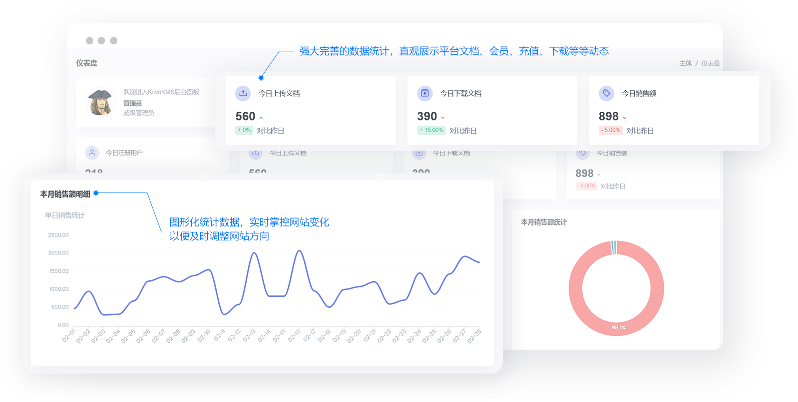 資源、流量、用戶、支付、下載、VIP運(yùn)營(yíng)等數(shù)據(jù) 可視化分析和跟蹤